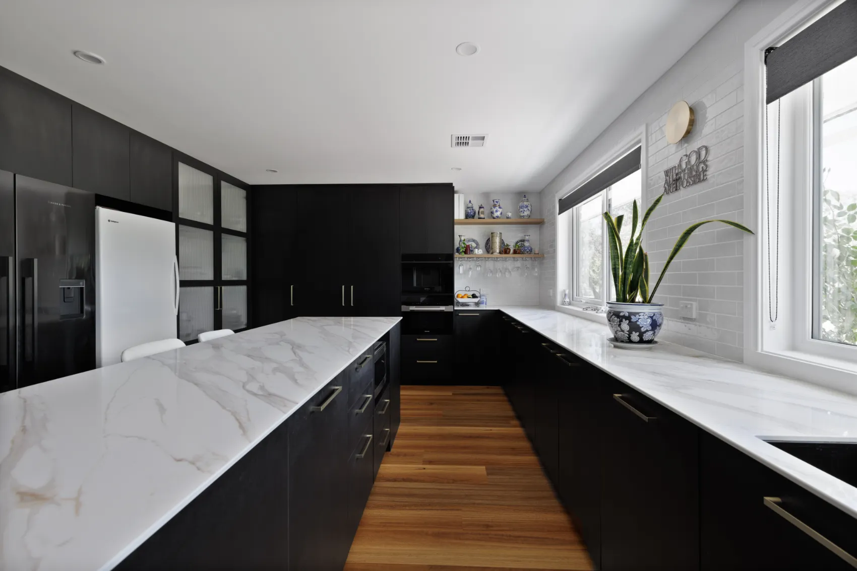 The fully equipped, contemporary kitchen features porcelain bench tops, soft closing drawers, double stacked oven, dishwasher and over looks the living area. Family, kitchen and dining are incorporated to provide superb entertaining options as it flows seamlessly to the large undercover outdoor decked alfresco area.